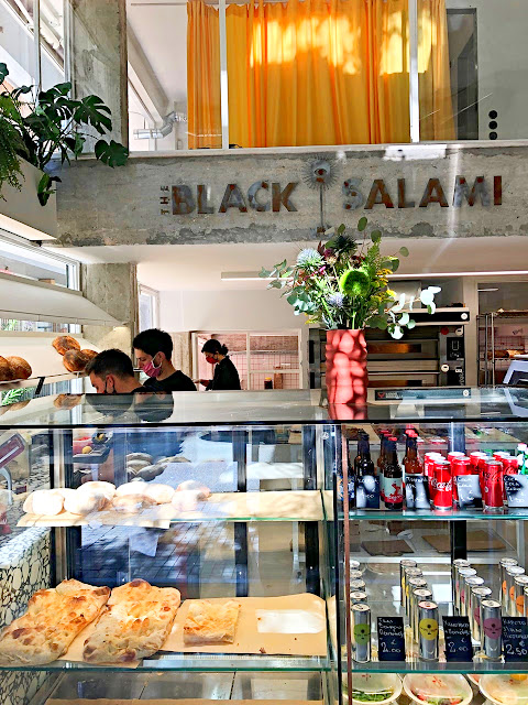 Το «Black Salami» είναι μια μερακλίδικη μικροαρτοποιία στη περιοχή των Εξαρχείων που αγαπάει ιδιαίτερα το προζυμένιο ψωμί και μας προσφέρει ποιοτικά ψωμιά με ουσιαστική και βαθιά νοστιμιά .Αφού ζυμωθούν τα προζύμια τα αφήνουν να ωριμάσουν από 10 έως 24 ώρες , σε ειδικούς χώρους και σε θερμοκρασία δωματίου για να επιτύχουν το επιθυμητό αποτέλεσμα . Το ψωμί έτσι γίνεται βαρύ, πιο θρεπτικό, αποκτά μεστή γεύση , τραγανή κόρα και μας δίνει έναν διαφορετικό πλούτο αρωμάτων. Το «Black Salami» είναι δημιούργημα ενός Ελληνοϊταλού master baker του Bruno Pezzia και του Αντώνη Καζάκου. Τα ψωμιά που διατίθενται σταθερά είναι το ημι-ολικής με προζύμι, το καρβέλι σίκαλης ολικής και πολύσπορο. Στα ράφια του «Black Salami» σας περιμένουν «ανθισμένες» φοκάτσιες , ρουστίκ χορτόπιτες και απίθανα σάντουιτς με premium γεμίσεις (ποιοτικά τυριά και αλλαντικά από μικροπαραγωγούς της Ελλάδας) , ενώ το highlights όλων είναι το πληθωρικό σάντουιτς με το γνήσιο παστράμι Νέας Υόρκης, πεκορίνο και τουρσί λάχανο!!! Ουάου !!!