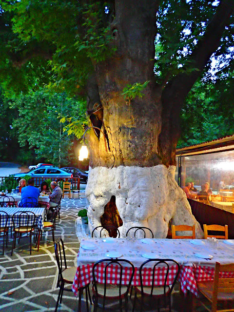 Ακροβούνι κάτω από τα βαθύσκιωτα αιωνόβια πλατάνια (που χρονολογούνται από τα